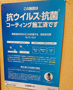高松自動車学校では、東京タワーやインテックス大阪、病院や幼稚園でも導入されている「キノシールド」で抗ウイルス・抗菌コーティング施工を実施しています。各教室、教習車、送迎バス、待合スペース、職員室など施設全体に、抗ウイルス・抗菌コーティングを施しています。