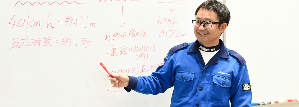 私はこの会社に2004年中途で入社しました。若いころからバイクや車の運転が好きだったこともあるのですが、普通自動車免許を取ったときの指導員さんがとても良かったという思いが強くあり、そういう人になりたいと思い、志望しました。