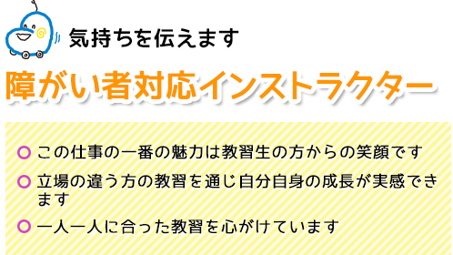 | 募集職種 | 障がい者対応インストラクター候補 |